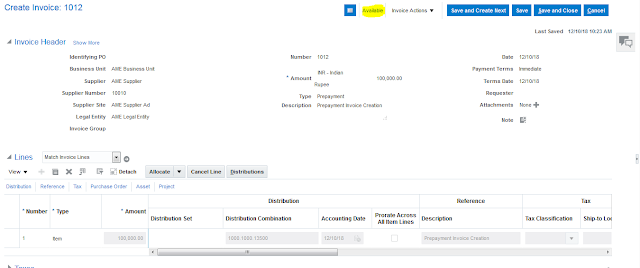 Step 8: Enter the required information for creating prepayment invoice and validate