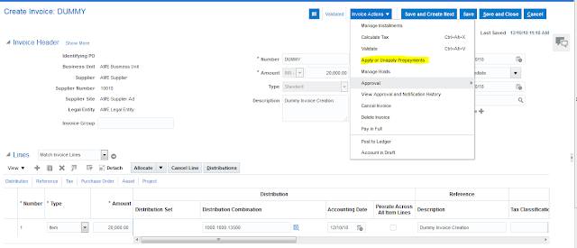 Step 13: Create Dummy Invoice for 20000.00 and Validate it.