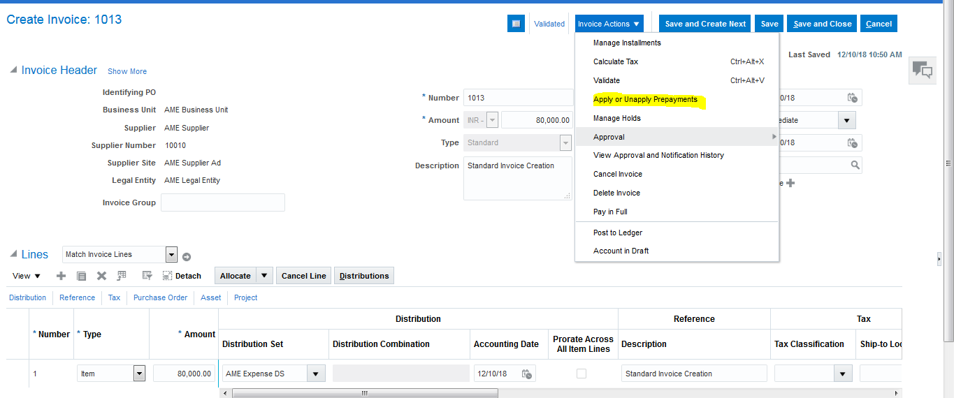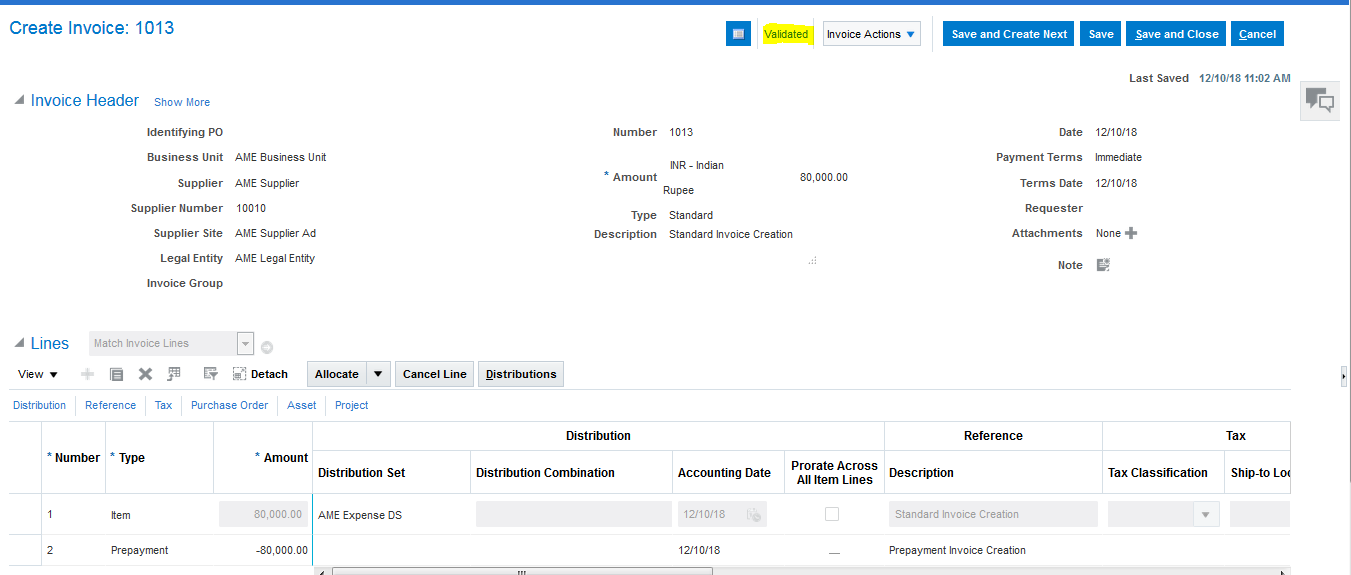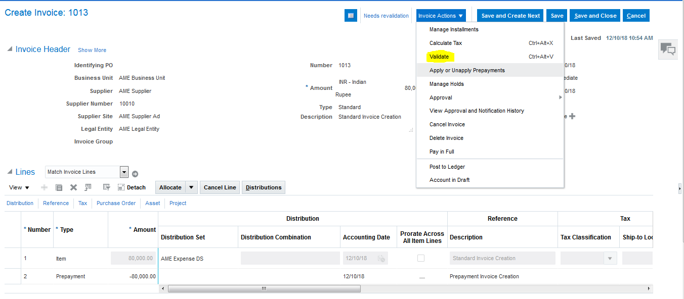 Step 11: Create Standard invoice 80000 and validate the invoice.