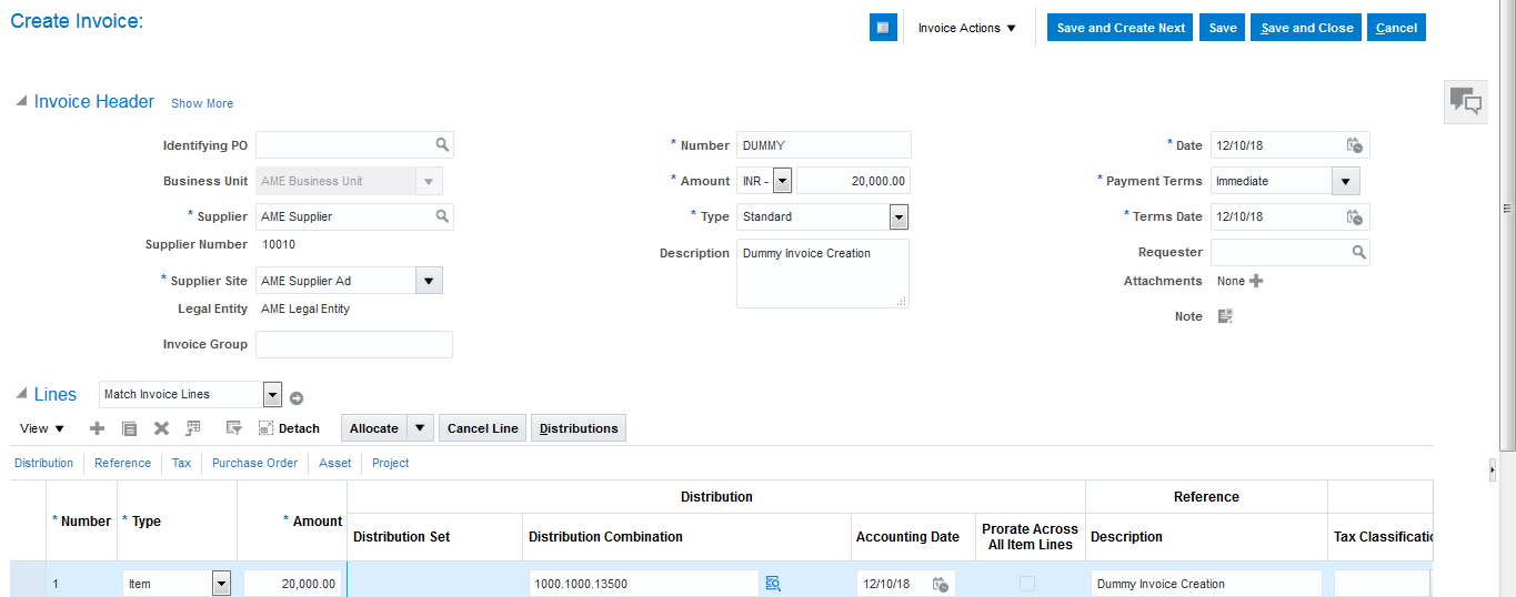 - Create the dummy Invoice 20000
