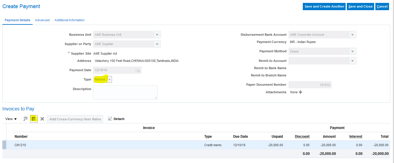 Please find the below setups for Supplier Refund Process